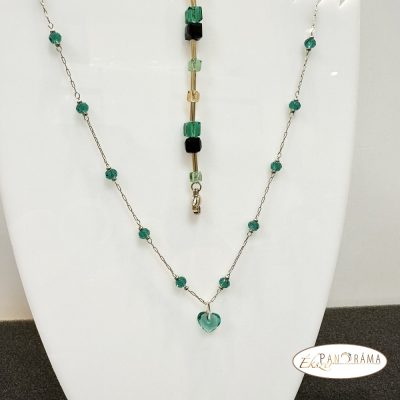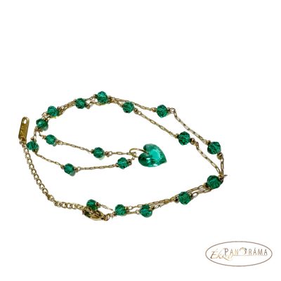 Finom kidolgozású, antiallergén arany színű nyaklánc zöld kristály gyöngyökkel, szív medállal!