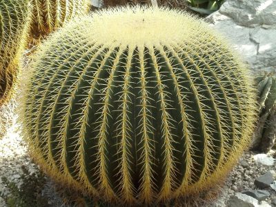 Kerek, gömb alakú törzse tüskékkel borított, amelyek aranysárga színükkel valóságos napsugárként ragyognak.
