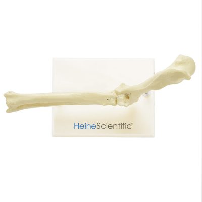 Ez a csontvázmodell egy közepes méretű kutya egészséges könyökét képviseli. A nagyobb stabilitás érdekében a modell fehér alapra van szerelve két állvány segítségével. Az állatorvosok ezt az anatómiai modellt használják a betegségekkel, sérülésekkel és terápiás lehetőségekkel kapcsolatos jobb betegtájékoztatás érdekében.