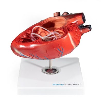 Ez az anatómiai modell egy átlagos méretű kutya szívét ábrázolja, amely Dirofilaria immitis-szel, vagyis szívférgességgel fertőzött. A modell a szív szerkezetét mutatja, ahol a felnőtt szívférgek súlyos fertőzések esetén találhatók.