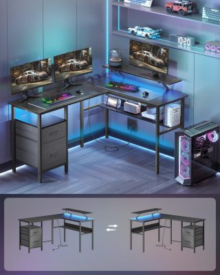 • [Rugalmas és sokoldalú] Ez az L-alakú, megfordítható kialakítású íróasztal lehetővé teszi a fiókok jobb vagy bal oldalra szerelését, így tökéletes íróasztalnak, tanulóasztalnak vagy játékasztalnak otthoni tanuláshoz.