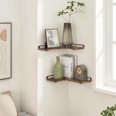 L alakú sarokpolcok 2 fali polc készlet Ipari formatervezés Nappali Hálószoba Konyha rusztikus barna/fekete: