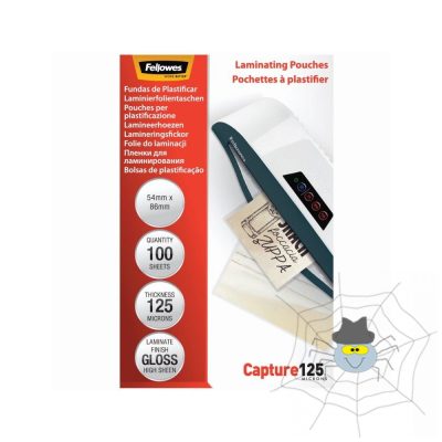 • Lamináló fólia, 54x86mm, 125 mikron, fényes, 100 db/doboz, Fellowes®