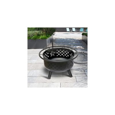 Egyedi tál kialakítás A tűz 360 fokos nézete Egyszerű összeszerelés Fekete matt felület Landmann Crossfire Fire Firepit: A Crossfire Fire Pit egy bájos és erős tűzrakóhely, fekete matt felülettel. Egyedülálló tál kialakítású, 360 fokos kilátással a tűzre. Ez egy csodálatosan kidolgozott acélszerkezet, gyönyörűen dekoratív csillaggal és gyémántmintával a külsején. Ez a tűzrakóhely kettős célt szolgál, mivel főzőgrillel is rendelkezik, amely tökéletes kolbász főzéséhez vagy pillecukrot pirít azokon a hűvös őszi estéken. A Crossfire hálós fedéllel rendelkezik, amely jobban irányítja a tüzet és védelmet nyújt a kóbor szikrák ellen. A hálófedél felemeléséhez póker is tartozik. Ez a tűzrakóhely nagyszerű fókuszpontot teremt a kertjében, és könnyen összeszerelhető.