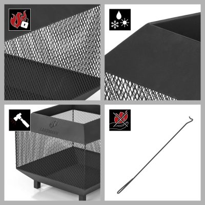 A LANDMANN dekoratív, szögletes, szikravédelemmel ellátott tűzkosara feltűnő kialakításának köszönhetően igazi szemet gyönyörködtető a kertben, a teraszon vagy kempingezéskor.