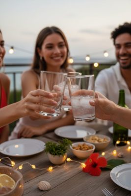 • Pro tipp: citrom- vagy uborkaszelet a peremhez – frissítő hatás, csúszás nélkül.