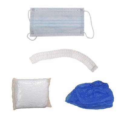 A PE látogató egységcsomag abban különbözik a normál látogató egységcsomagoktól, hogy ebben a látogató egységcsomagban az egyszer használatos köpeny nem nemszőtt textilből, hanem polietilénből van, ezáltal olyan helyeken is használható ahol fröccsenő folyadékoktól kell megvédeni a látogató ruháját. Ezen a PE látogató egységcsomagban lévő egyszer használatos köpenyen nem megy át a rácsapódó folyadék.