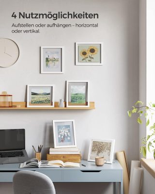 A 4 x 6 hüvelykes, 5 × 7 hüvelykes, 6 × 8 hüvelykes és 8 × 10 hüvelykes képek elférnek a képkeretben4 Felhasználás: Álljon az asztalra vagy akassza fel a falra – vízszintesen és függőlegesen is rögzítse a kereteket szorosan a falhoz3 mellékelt jelölésekkel ellátott papír segít meghatározni a keretek falra rögzítésének helyeit A mellékelt fém állványok megtámasztják a képkereteket, így azok stabilan állhatnak az asztalon. a képek.A keretek kiváló minőségű üvegből és MDF-ből készülnek, így éles képeket tekinthet meg, és a kereteket tartósan használhatja