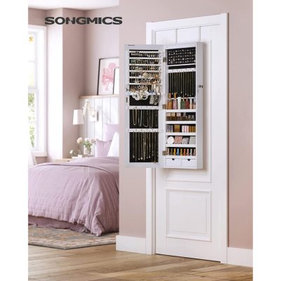 • [Díszítse fel hálószobáját] Szépítse meg hálószobáját ezzel a falra szerelhető ékszeres szekrénnyel, vagy ajándékozza el legkedvesebb barátjának!Felhívjuk figyelmét, hogy a mellékelt ajtókampó nem illeszkedik a 14 mm-es vagy annál vastagabb ajtókhoz
