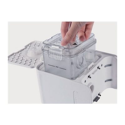 Hordtáskával, 2 szűrővel, légtömlővel, fűtött párásítóval, légző orrmaszkkal, hálózati adapterrel, tápkábellel és kézikönyvvel (GB, IT) szállítjuk.