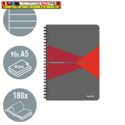 • LEITZ Office Spirálfüzet, A5, vonalas, 90 lap, PP borító, szürke-piros 44991025