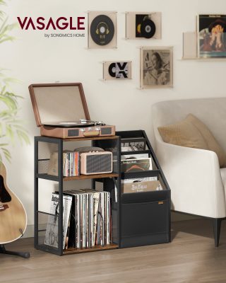 • Kedvenceid bemutatása: Az oldalsó 3-szintes tárolórekesz lehetővé teszi, hogy kiállítsd a kedvenc albumaidat, miközben egyszerűbbé teszi a lemezek megtalálását, így egy igazi vinyl könyvtár élményét nyújtja.