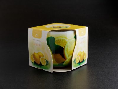 • Lemon díszdobozos illatozó gyertya üvegpohárban