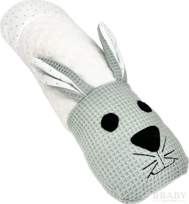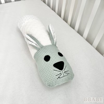 Little Bunny – Állatfigurás szundi hengerpárna | Menta nyuszi, waffle pamut és minky
