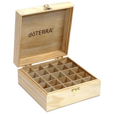 A 25 esszenciális olaj tárolására kialakított, egyedi tervezésű, doTERRA logóval gravírozott fadoboz könnyű és kompakt, aminek köszönhetően egyszerű tárolási és szállítási módot biztosít a doTERRA illóolajok számára.