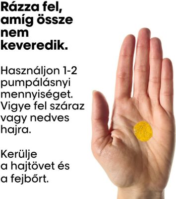 - Nyomjon 1-2 adagot az adagolópumpából a nedves vagy száraz haja közepére és a hajvégekre, kihagyva a hajtöveket