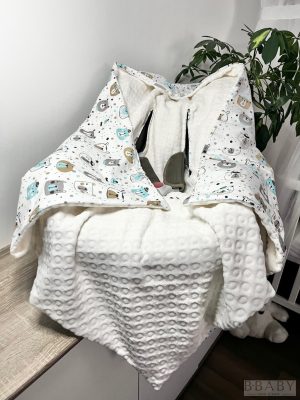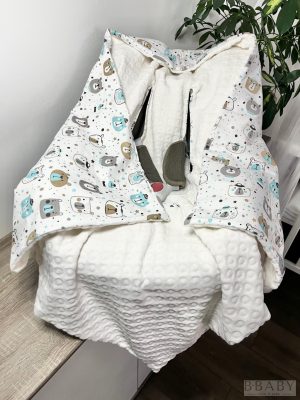 A kapucnis kialakítás extra védelmet biztosít a baba fejének, miközben a testet melegen tartja anélkül, hogy túl szoros lenne. A takarón található speciális övátbújó nyílásoknak köszönhetően kompatibilis minden 3 pontos övrendszerrel rendelkező babahordozóval és autósüléssel – így biztonságosan rögzíthető, nem gyűrődik össze, és nem zavarja a baba testhelyzetét.