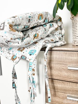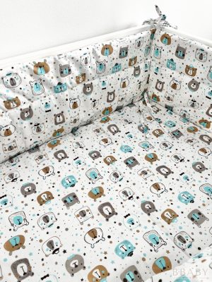 A mackó pofik mintája nemcsak dekoratív, hanem segít a baba arcfelismerési készségének fejlődésében is – miközben egy kedves, ismerős közegben nőhet fel.