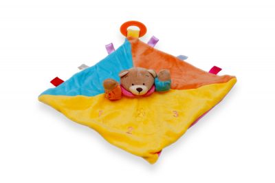 Macis rágókás szundikendő és babjáték élénk színekkel, ajánlott újszülött kortól - lányos