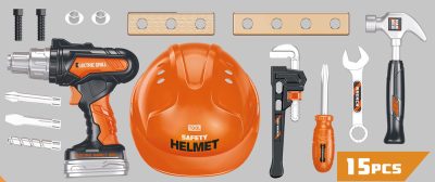 - 1 db műanyag csavarozó 1 db levehető tokmánnyal és 1 db játék akkumulátorral 3 db fejjel, amely két irányba forog (kapcsoló segítségével lehet váltani az irányt) és hangot ad (2 db AA elem kell hozzá, ami nem tartozék)