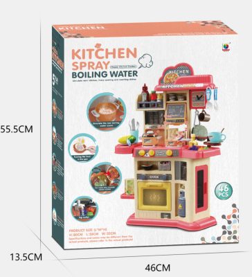 • Mama Kiddies 46 részes 80 cm magas Happy Kitchen pink játék babakonyha szett kiegészítőkkel
