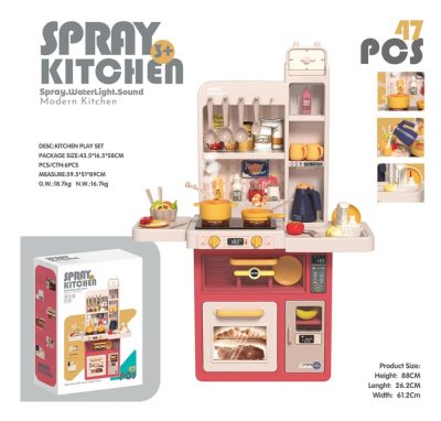 Mama Kiddies 47 részes 88 cm magas Spray Kitchen babakonyha szett piros színben