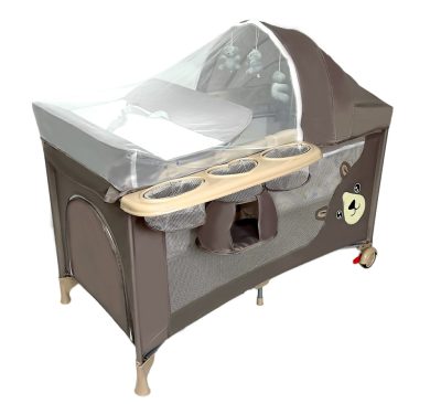 Mama Kiddies Sweet Dreams multifunkciós utazóágy barna színben macis mintával