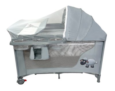 • Mama Kiddies Sweet Dreams multifunkciós utazóágy szürke színben bárány mintával