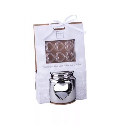 Mécsestartó+6db wax szív ezüst 7,5cm
