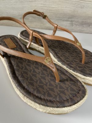 Ez a Michael Kors Samara szandál barna logós színben nem enged a komprommiszumoknak.