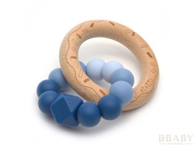 Mimijo szilikon rágóka SKY – 1 bükkfa karikával | Bababarát rágóka kék színben, fogzási időszakra