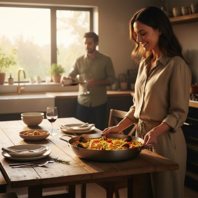 • Kényelmes használat: A két füles kialakítás biztonságos és kényelmes fogást biztosít. A serpenyő könnyen felemelhető és mozgatható.