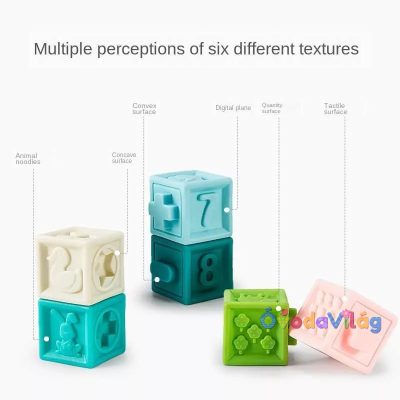 6 db-os Rágóka és csörgő készlet - Huanger babajátékok közül mindig nagy sikernek örvendenek a puha építőkockák! Ezt az építőkockákat kimondottan a legkissebb gyermekek számára tervezté! színesek, és puhák, így a babák nem ütik meg magukat vele! A kockáknak minden oldala más, így a megfelelőhoz párosítva a kockák összekapcsolódnak!