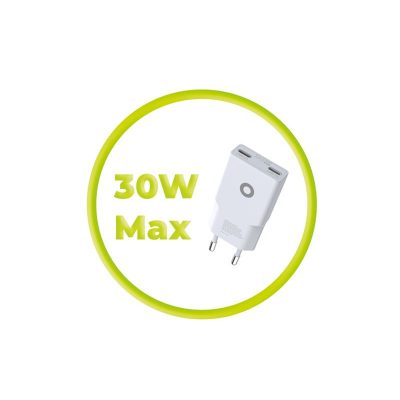 A GaN 30W Slim Charger MO18 - Dual USB-C adapter gyors és hatékony töltést biztosít a legújabb GaN technológiával és Power Delivery támogatással. Két USB-C port teszi lehetővé az egyidejű töltést. Kompakt, 80 × 36 × 15 mm-es méretei tökéletesek utazáshoz és otthoni használatra egyaránt.