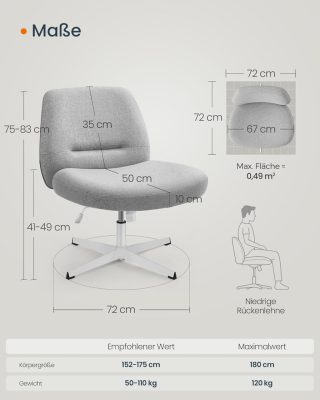 Forgószék, Sminkszék, Forgószék karfa nélkül, Asztali szék, Széles ülés, Modern, Kereszttalppal, Állítható magasságú, Ringató funkció,galambszürke:
