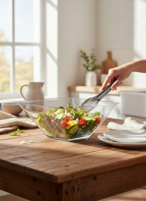 A Modi üveg salátástál 25 cm praktikus és esztétikus megoldás nagyobb mennyiségű saláták, gyümölcsök vagy köretek tálalásához. A 2,8 literes űrtartalom elegendő helyet biztosít családi étkezésekhez és rendezvényekhez.