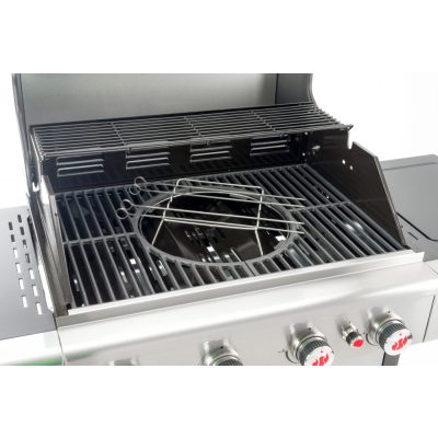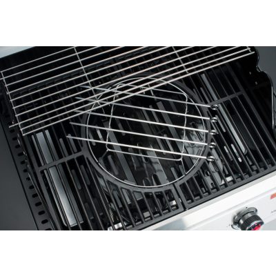 A szett továbbá tartalmaz egy kör alakú rozsdamentes tartót, amelyet a grillrácsra lehet helyezni, és amelyekbe a nyársakat lehet beleilleszteni. Ez a tartó kényelmesen és stabilan tartja a nyársakat, így azok nem csúszkálnak el vagy nem forognak el a grillezés során.