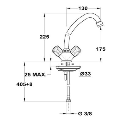 Mofém alsó bekötésű csaptelep nyílt rendszerű bojlerekhez, 130 mm-es forgatható kifolyócsővel, egyedi biztonsági sugárvezetővel.