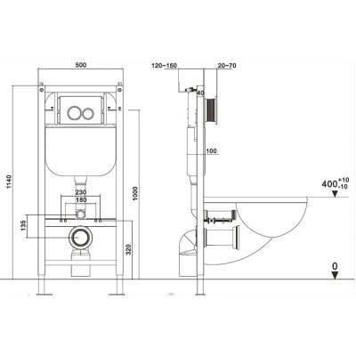 Az EVO-Tech keretrendszert kifejezetten fali felfüggesztésű WC-khez tervezték. A készülék maximális teherbírása 400 kg, így stabil és megbízható støtte-elemet nyújt a modern fürdőszobákban. A termék mérete 500 × 100 × 1140 mm, a tartály vastagsága pedig 100 mm.