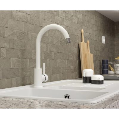 • MOFÉM Evo-X J180 egykaros álló mosogató csaptelep matt fehér színben