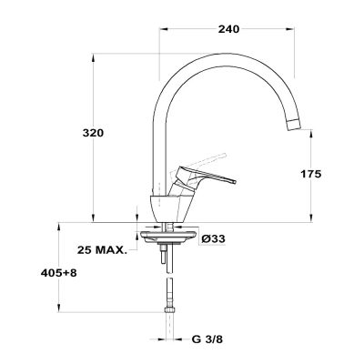 Mofém egykaros mosogató csaptelep 240 mm-es forgatható felső kifolyócsővel és 35 mm-es kerámia vezérlőegységgel. Minden Teka keramikus vezérlőegység magas ellenállóképességű szinterezett kerámialemezeket tartalmaz. A tárcsák porózus felülete tovább megtartja a kenőanyagot és finomabb, lágyabb mozgást eredményez, meghosszabítva ezáltal a csaptelep élettartamát. A működtetést végző elem el van szigetelve a víztől, így biztosítva a folyamatos kenést.