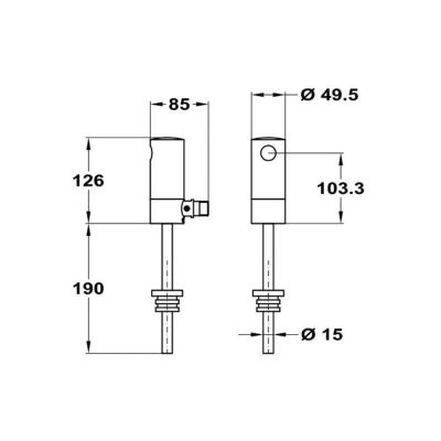 Mofém elektromos vizelde öblítő infrás, érintés nélküli működéssel, integrált mágnesszeleppel. Az öblítést 2 másodperccel a tartomány elhagyása után megkezdi. Az öblítési idő távirányítóval beállítható 0.5-15 másodperc között. Automatikusan öblít 24 óra használatlanság után. Az elem alacsony töltöttségi szinjtét kijelzi. A falra 1/2"-os külső menettel csatlakozik, a vizeldéhez egy 20x250 mm átmérőjű rozsdamentes acél csővel.