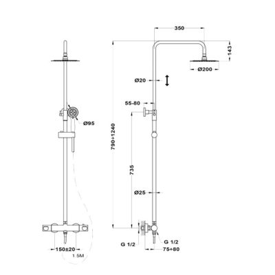 A nagyméretű 200 mm átmérőjű zuhanyfej extra áramlást biztosít a magasabb komfortérzet eléréséért.