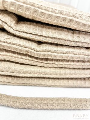 A mogyoró színű waffle kiságy rácsvédő 200x30 cm-es méretben kiváló választás, ha megbízható és természetes anyagú védelmet keresel kisbabád számára. A különleges waffle pamut anyag háromdimenziós, darázsszövésű szerkezete puha tapintást és légáteresztő tulajdonságokat biztosít, így a baba pihenése nemcsak biztonságos, hanem kényelmes is.