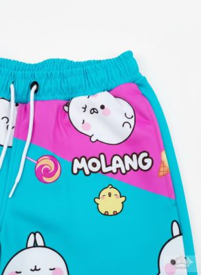 Mintázat: Az elején Molang nyuszi és barátja, Piu Piu látható, körülöttük halvány édesség grafikákkal (fagylalt, nyalóka, sütemény).