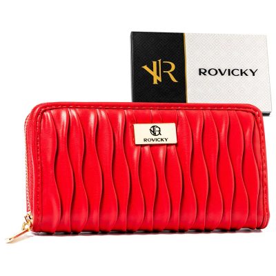 A Rovicky pénztárca vízszintes fekvésű és modern megjelenésű, amely egyszerre divatos és praktikus. Hullámos kivitele és piros színe vonzza a tekinteteket, miközben biztosítja a szükséges funkcionalitást a mindennapi használathoz.