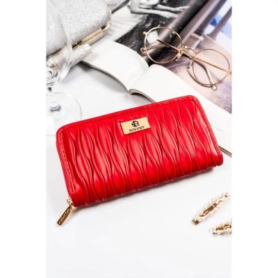 Ez a piros női pénztárca elegáns, hullámos gyűrött felülettel és cipzáras záródással rendelkezik. Kiváló minőségű, gondosan kiválasztott ökológiai bőrből készült, amely stílust és tartósságot biztosít.