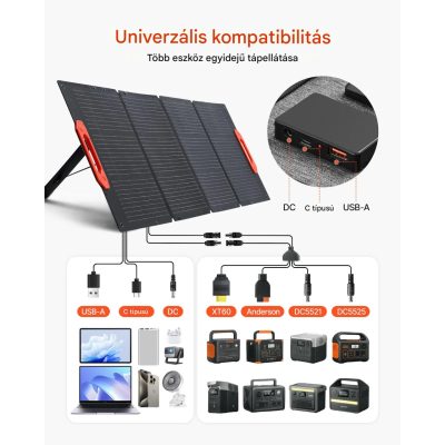 • Csatlakozók: MC4, USB (QC3.0), Type-C, DC