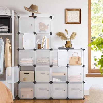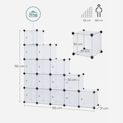 15 kockás barkácstároló rendszerező egység, műanyag szekrény, kombinálható tároló, szekrény, ajtókkal, ruhákhoz, cipőkhöz, játékokhoz, könyvekhez, könnyen összeszerelhető, fehér