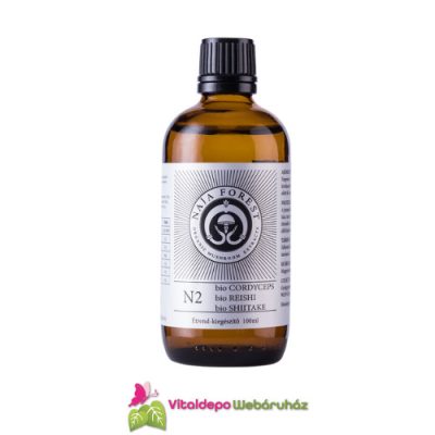 NaJa Forest N2 bio CORDYCEPS, bio REISHI, bio SHIITAKE étrend-kiegészítő, mely 3 féle gyógygombából készült folyékony kivonat, 64% poliszacharid tartalommal.